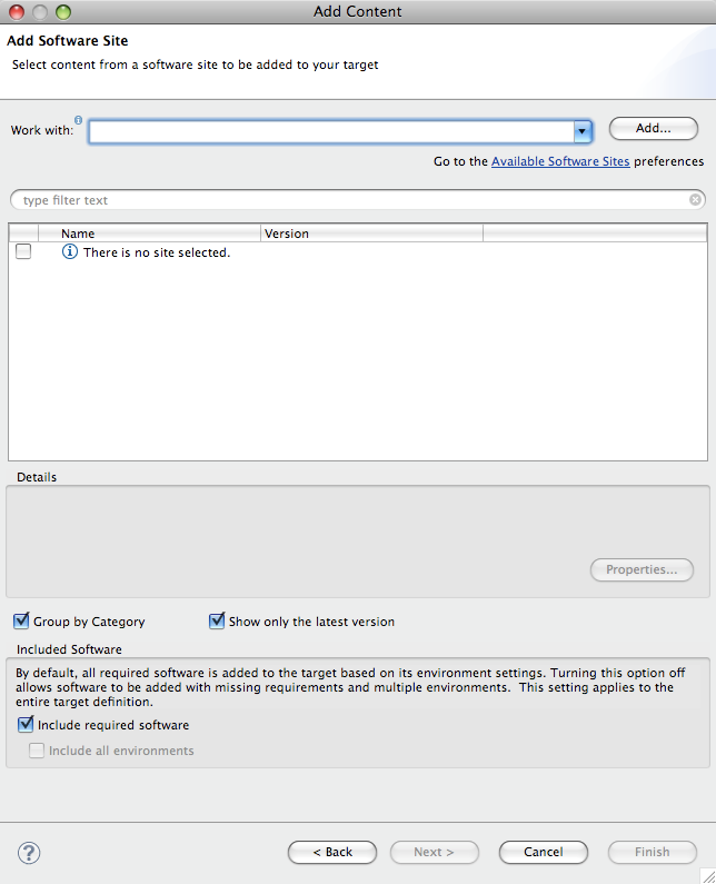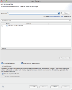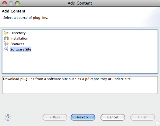 - Select Add… on the page to add additional plugins and select “Software Site” on the opened dialog