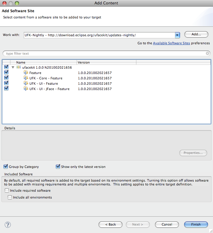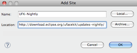 - Insert as URL http://download.eclipse.org/ufacekit/updates-nightly/