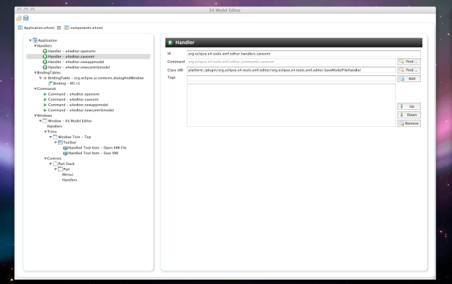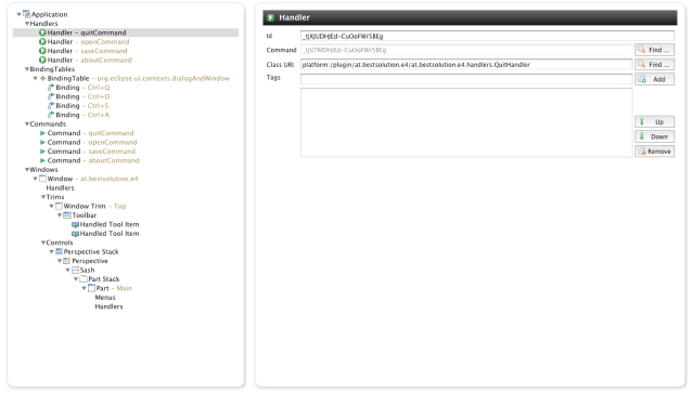 - org.eclipse.e4.tools.emf.ui – Holds the main Editor-UI but doesn’t deal with integration into an application