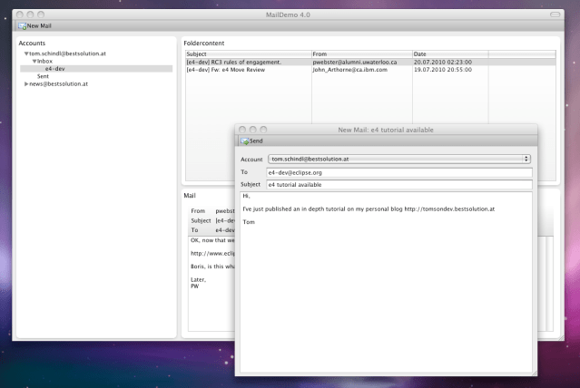 Now the 4.0 release is approaching very fast and I’ve been working full(free)time on an extended tutorial writing an e4-RCP-Applications.