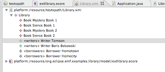 <stock xsi:type="extlib:Book" borrowers="//@borrowers.1" title="Mystery Book 1" author="//@writers.0"/>