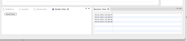 Not too complex but is it possible in fewer lines or in other words without the many lines of glue code? Then stay tuned for a follow blog entry on how e4 provides easy access to the EventAdmin-Service or visit my Eclipse 2011 talk “Singlesourcing for Eclipse 4.x and Eclipse 3.x” where you’ll learn to apply the Eclipse 4.0 style to your 3.x applications.