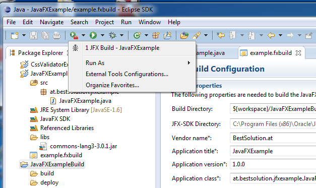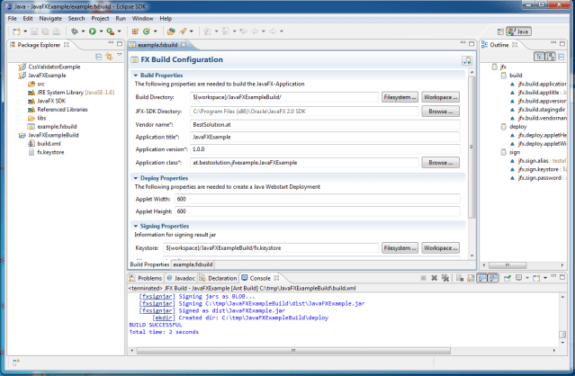 The JavaFX-SDK comes with an ant-extensions that allows developers to easily package and deploy their JavaFX application.