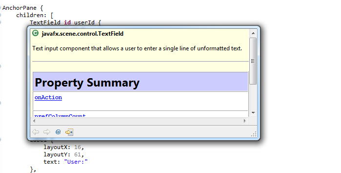 <TextField layoutX="68.0" layoutY="58.0" prefWidth="126.0" fx:id="userId" onAction="#processLogin"/>
