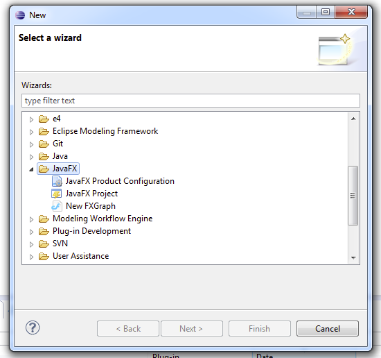 - A JavaFX category to group all JavaFX-Wizards has been added