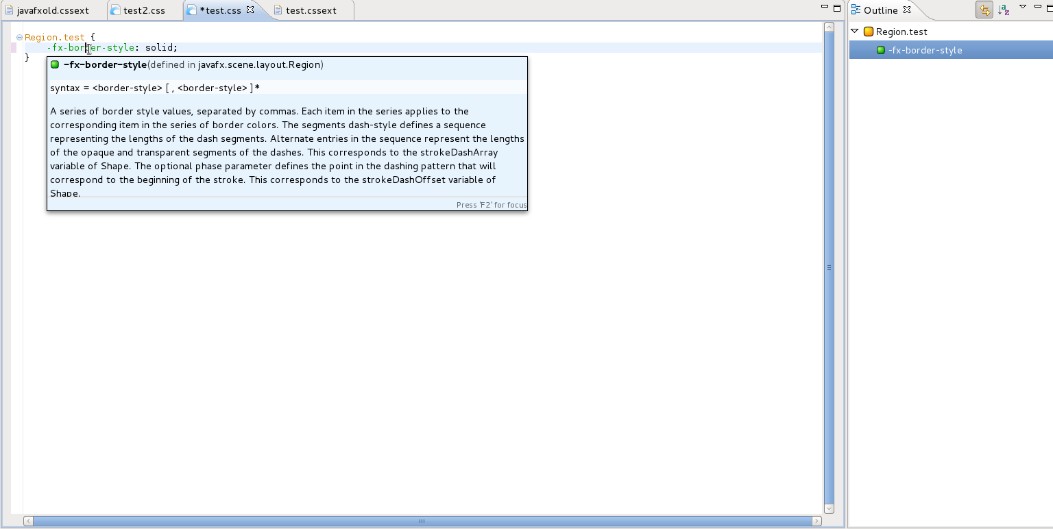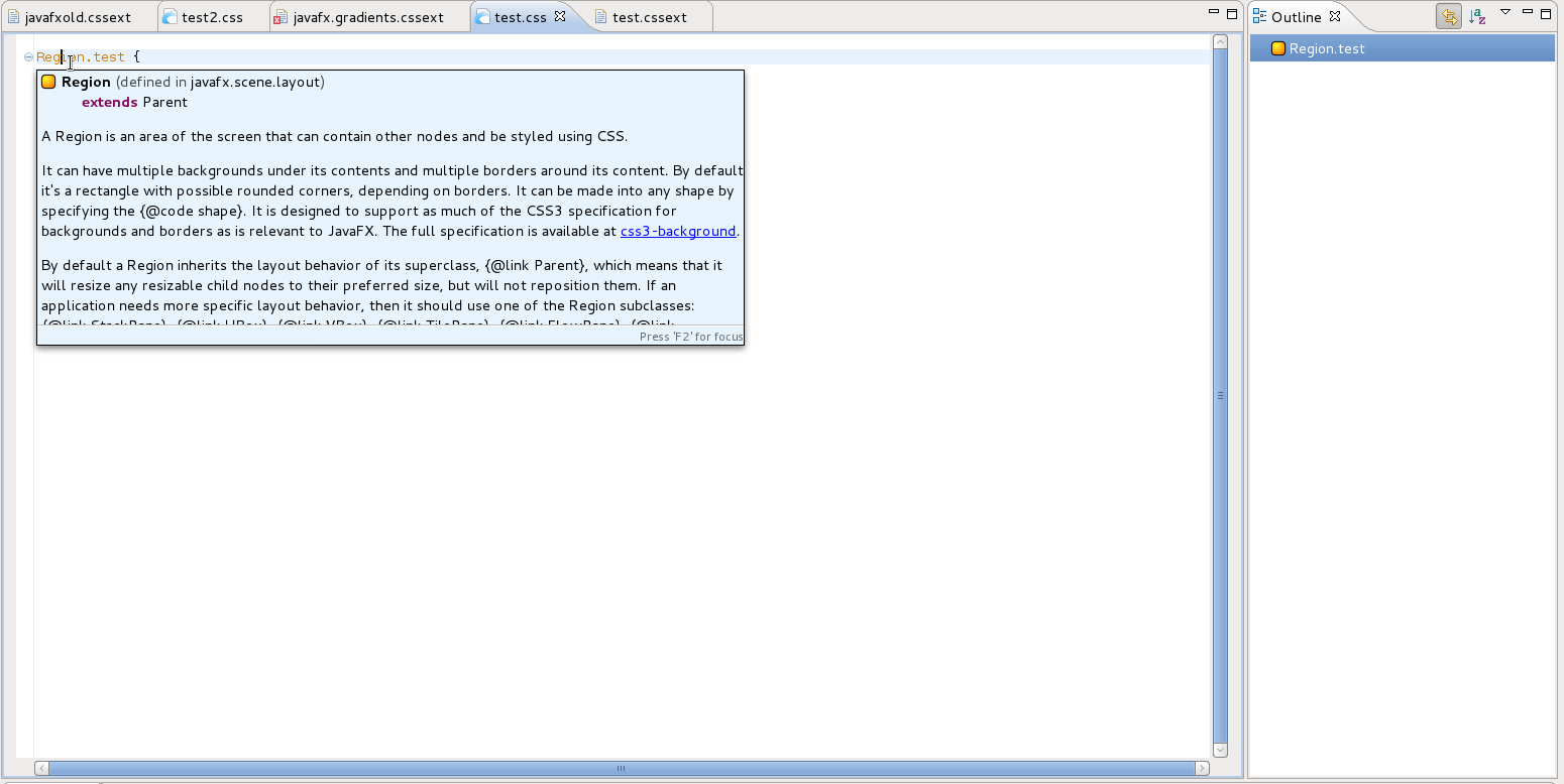 and results in the following documentation tooltips in our CSS-Xtext-Editor: