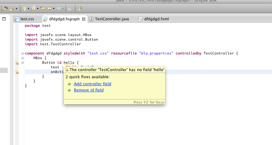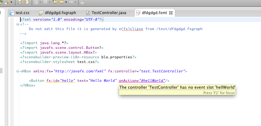 Both of them now validate the fx:id and controller methods you assign and provide you with warnings and errors in case something is not correct.