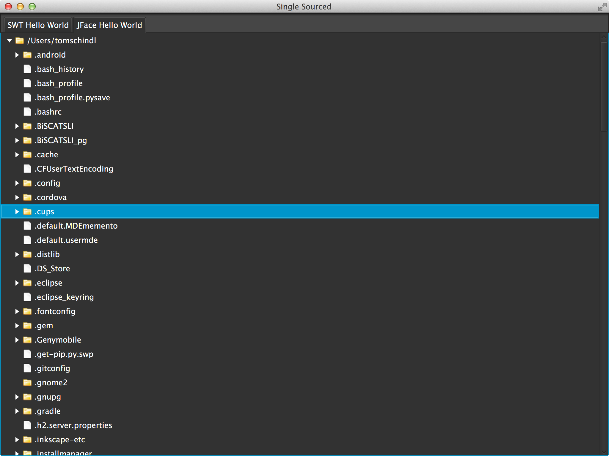 • Create a Java class next to the SWT-UI one – I named mine JFaceHelloWorld