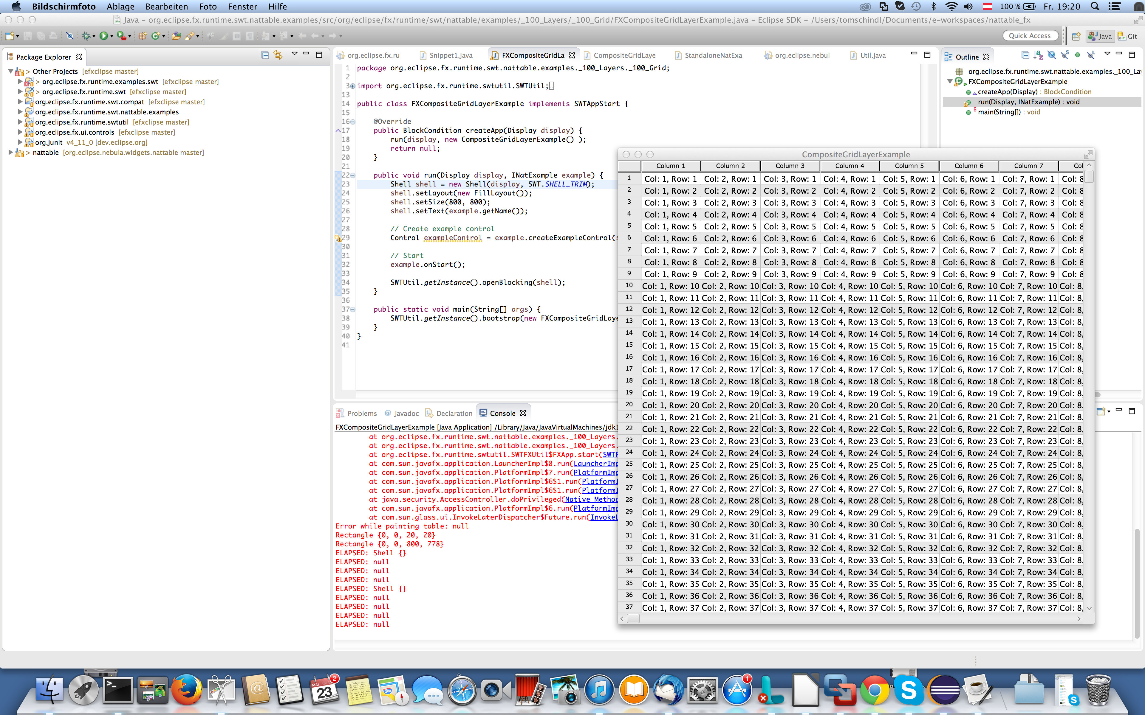Inspired by a twitter discussion started by Andres Almiray if NatTable could be run in JavaFX application I checked out the sources, added some missing API to SWTonFX GC implementation and voila it renders a NatTable sample as the SWT version does
