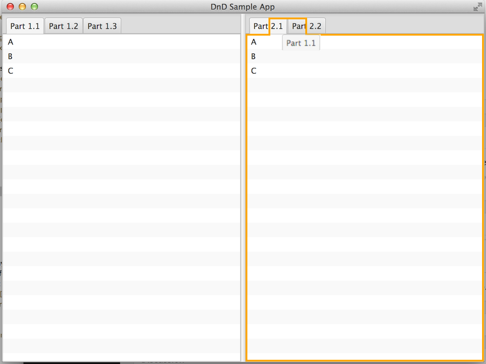One of the major missing features of the the e4 JavaFX Runtime Platform was the missing support for Drag and Drop to reorder, reparent and split PartStacks using DnD. I’m happy that we managed to get in those missing feature into the 1.0 release and that we are in the process of moveing our implementation to OpenJFX so that others get this support in 8u40 as well.