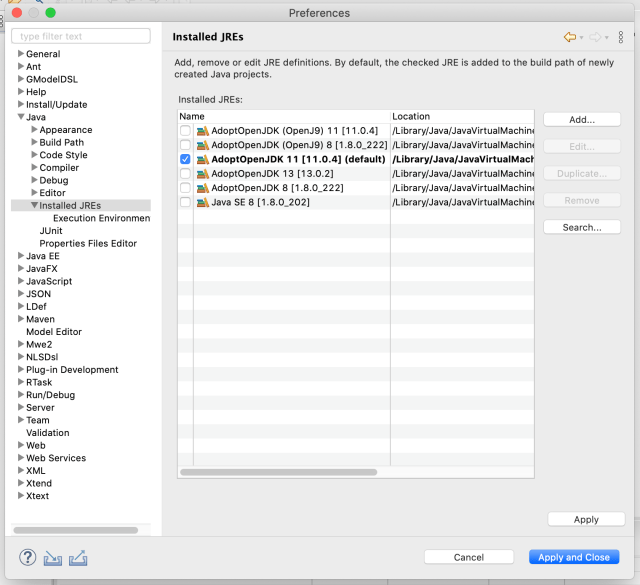 Make sure AdoptJDK-11 is used for the Java-SE-11 EE