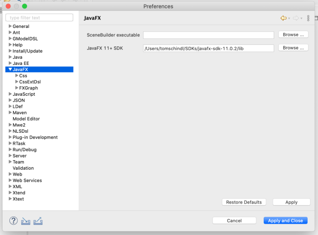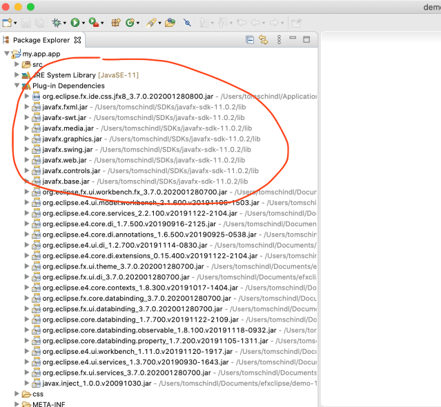 This step is required because JavaFX is not part of AdoptJDK-11 and hence Eclipse won’t find the libraries and your code won’t compile inside the IDE (we’ll revisit this topic below once more)