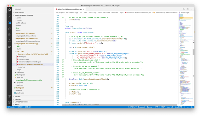 The video below shows a LWJGL-Demo we adapted to use DriftFX
