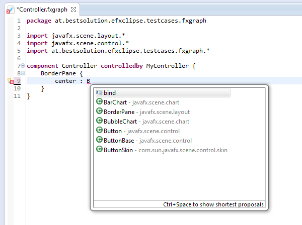 So in 0.0.9 I switched the FXML-Editor from a custom written to an Xtext backed one (the only feature I had by then was to provide attribute proposals).